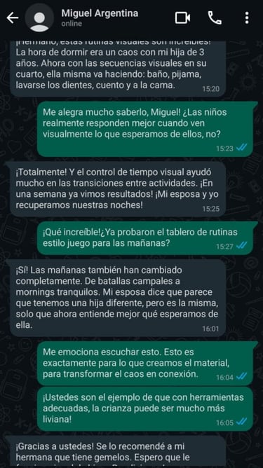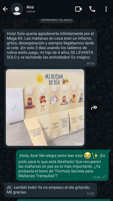 "Implementamos las rutinas visuales y en una semana notamos el cambio. Mi hija de 3 años ahora sigue las secuencias sin resistencia. ¡La paz en casa no tiene precio!"