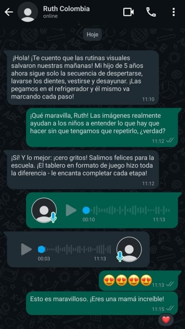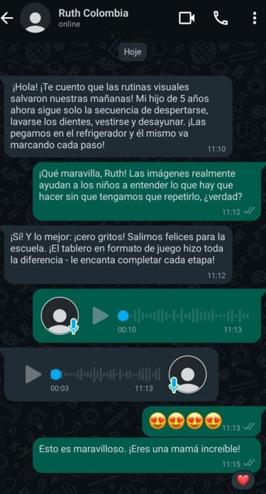 "Las salidas a la escuela eran un drama diario. Con las tarjetas visuales, transformamos las mañanas. Ahora salimos puntuales y sonrientes."